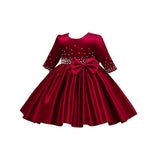 Girl Christmas Dress Baby Girl Formal Dresses Toddler Beaded Bow Wedding Dress Girl Birthday Dresses