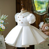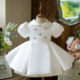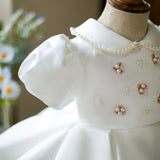 Toddler Prom Dress Girl Princess Summer White Bead Doll Collar Christening Dress