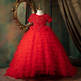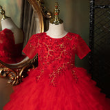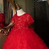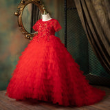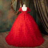 Girl Christmas Dress Toddler Communion Dress Children Red Fluffy Princess Birthday Tail Gorgeous Pageant Dress