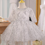 Baby Girl Dress Toddler White Princess Fluffy Printed Pattern Fluffy Party Dress