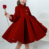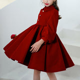 Girl Christmas Dress Baby Girl Dress Toddler Winter Red Long Sleeve Doll Collar Pageant Princess Dress