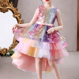 Girls Pageant Dresses Gorgeous Lace Sleeveless Ball Gown Rainbow Formal Dress