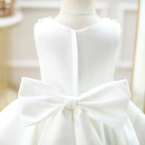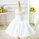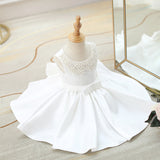 Toddler First Communion Dress Baby Girl Princess Party Dress White Bead Collar Flower Girl Dress