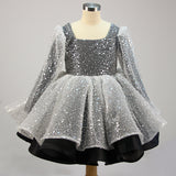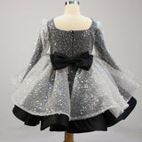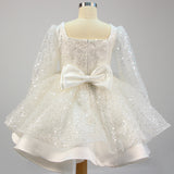 Girl Formal Princess Dresses Baby Girl Bow Mesh Long Sleeve Sequined Christening Dress