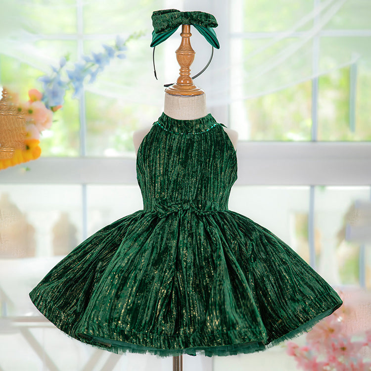 Cute Baby Girl Beauty Pageant Dress Toddler Velvet Birthday Party Princess Dress