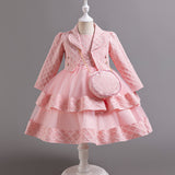 Toddler Girl Birthday Party Dress Two-piece Puffy Long-sleeved Princess Dress