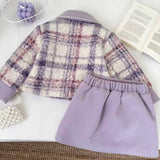 Girls' Winter Bow-Knot Plaid Jacket and Skirt Two-Piece Set