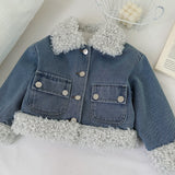New Girls' Fur-lined Denim Jacket Skirt Two-Piece Set