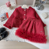 New Girls' Winter Christmas Coat Skirt Two-piece Set