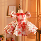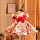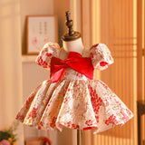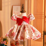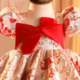 Baby Girl Christening Dress Toddler Printed Birthday Party Dress Girl Bow Knot Puffy Princess Dress