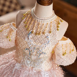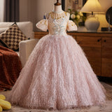 Girls Pink Ball Dress Children's Birthday Princess Dress