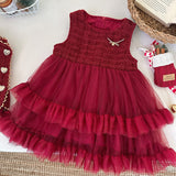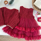 Winter Girls' New Year Coat Vest Dress Two-piece Suit