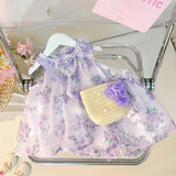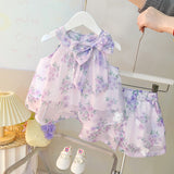Girls Summer Thin Flower Top Shorts Two-piece Set