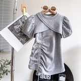 Sweet Girls' Tight-fitting Hollow Shawl Skirt Two-piece Set