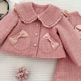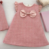 Girls' Winter Bow-Tie Coat Vest Dress Two-Piece Set