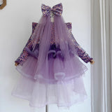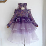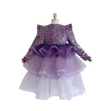 Cute Baby Girl Purple Long Sleeve Sequin Puff Dress Girl Toddler Prom Dress