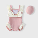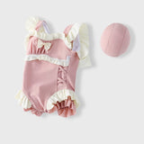 Girls Cute Princess Swimsuit and Swim Cap Two-Piece Set