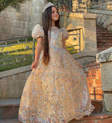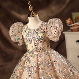 First Communion Dress Girl Pageant Princess Dress Dress Baby Girl Summer Gorgeous Puff Sleeve Sequin Formal Dress