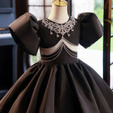 Baby Girl Birthday Banquet Hollow Mesh Bead Trailing Princess Dress