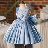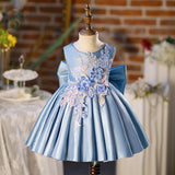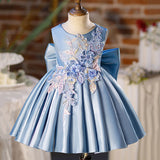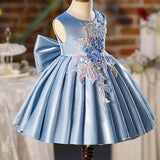 Baby Girl Embroidery Flower Big Bowknot Pageant Sleeveless Princess Dress