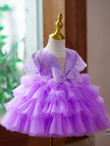 Baby Girl Fluffy Dress Purple Sequins Toddler Birthday Princess Dress
