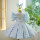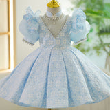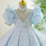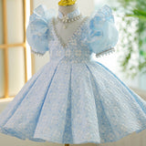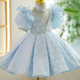 Baby Girl Pearl Neckline Puff Sleeves Flower Pageant Princess Dress