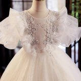 Flower Girl Pageant Long Tail Dress Back Lacing Princess Dress
