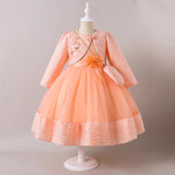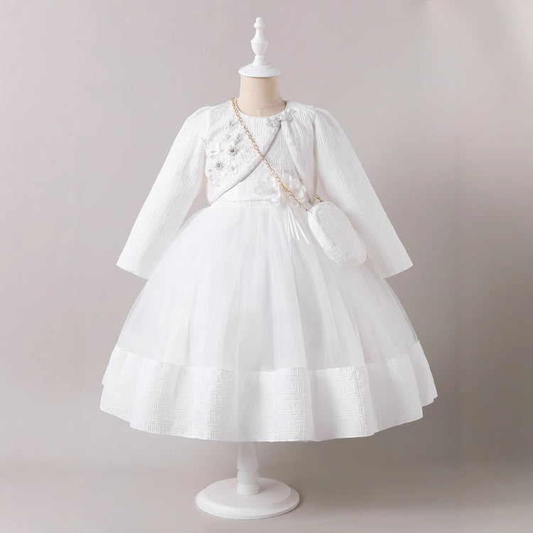 Jacquard Tulle Princess Dress Coat and Crossbody Bag Three-piece Set