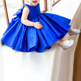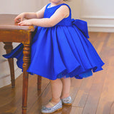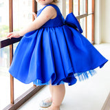 Toddler Prom Dress Girl Blue Sleeveless Party Bow Puffy Princess Dress