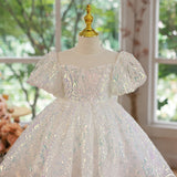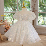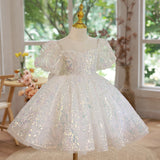 Baby Girl White Sequins Fluffy Yarn Performance Princess Dress