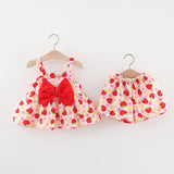 Baby Girls Printed Suit Girls Suspender Shorts Two-piece Suit