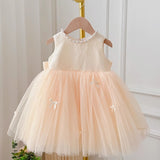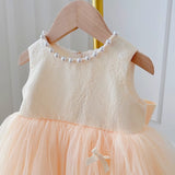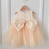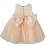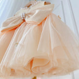 Cute Baby Champagne Bow Fluffy Gauze Dress Toddler Birthday Party Dress