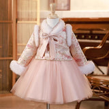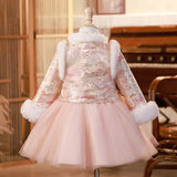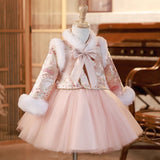 Cute Children's New Year's Greeting Princess Dress Girl's Winter Birthday Dress