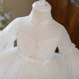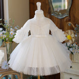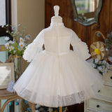 Cute Flower Girl White Puffy Birthday Party Princess Dress