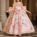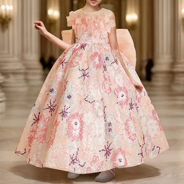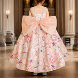 Elegant Baby Floral Big Bow Princess Dresses Toddler Long Prom Dress