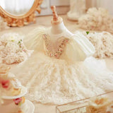 Elegant Baby Girl Butterfly Sequin First Communion Dress oddler Mesh Princess Dress