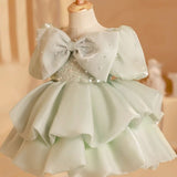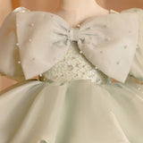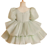 Elegant Baby Girls Green Puff Sleeve Beauty Pageant Dress Toddler Birthday Costume Princess Dress