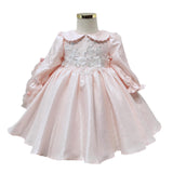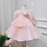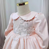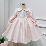 Elegant Baby Pink Doll Collar Puff Long Sleeve Patterned Princess Dress Toddler Pageant Dresses