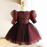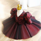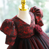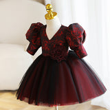 Elegant Girl Fluffy Wine Red Birthday Party Dress