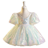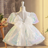Girls Birthday Party Dress Children White Sequin Princess Dress