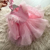 Girls Birthday Princess Dress Children Bow Puffy Dress