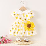 Girls Sunflower Dress with Bag Cute Princess Dress