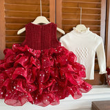 Girls' New Year Knitted Top and Sleeveless Dress Two-Piece Set