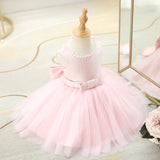 Toddler Birthday Party Dresses Baby Girl Pink Beaded Cutout Backless Formal Princess Dress
