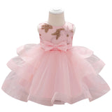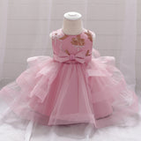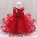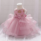 Infant Formal Dresses Baby Girl Cute Sleeveless Embroidery Bow Fluffy Ball Gowns Princess Dresses
