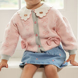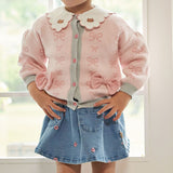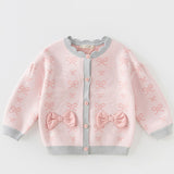 Children's Cartoon Knitted Jacket Girl Bowknot Cardigan Sweater Autumn Knitwear