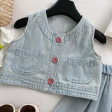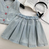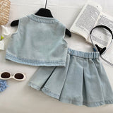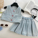 Girls' Summer New Soft Denim Top and Skirt Two-piece Set