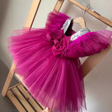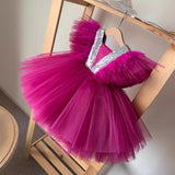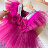 Cute Baby Girl Purple V-neck Butterfly Sleeve Double Layer Mesh Dress Toddler Birthday Princess Dress