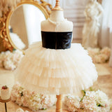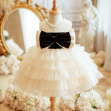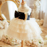 Elegant Baby Contrast Bow Formal Dresses Toddler Birthday Costume Princess Dress