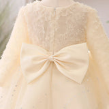 Elegant Baby First Communion Dress Toddler Bow Christening Dress